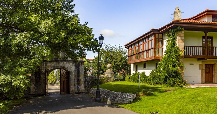 Esta monumental portalada engalana el acceso principal a la Finca Marqués de Valdecilla. Fue instalada durante la ampliación de sus terrenos hacia 1935 por orden de María Luisa Gómez Pelayo, principal heredera del legado de su tío el Marqués de Valdecilla.